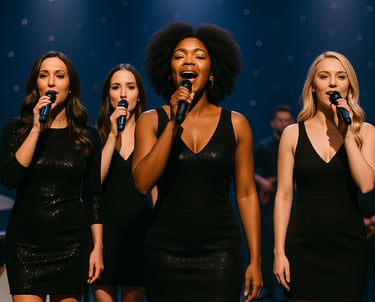 High Heels & Harmonies is a four-vocal powerhouse covering everything from vintage harmony to modern pop, shaped to fit your event. We deliver tailor-made shows for corporate events, weddings, birthday parties, cruise ships and holiday parks. Perform with our live band or on premium tracks, from intimate dinner sets with just piano and vocals to full dance-floor sets. We can travel with a complete band, run on tracks, or supply charts for your house band with click. Our theatre production Ladies Night scales from a tight 4-piece to a 10-piece band to suit your budget, and it also works brilliantly for parties, nightclubs and social clubs across a wide range of venue sizes. Fully self-contained or integrated into your in-house production, every show comes with professional audio, lighting and video enhancement for a polished, modern look.